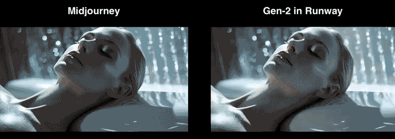 于是很多网友探索出了用 Midjourney 生成图像,然后用 Gen-2 把图像转化为视频的玩法。