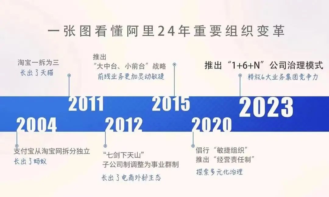 过去二十多年里,阿里一直擅于通过自我创新来适应形势的变化,正是敏捷的战略调整和组织变革帮助阿里穿越了一个个大小周期。