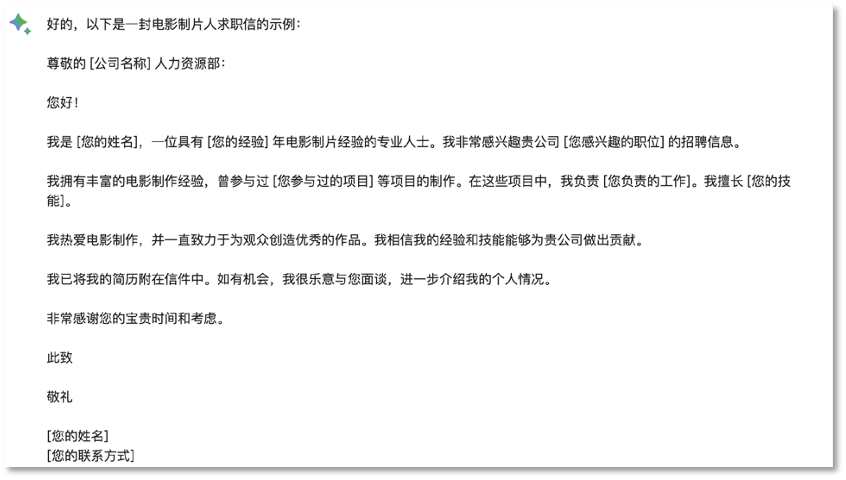 比如,5 月 10 日,Bard 添加了一键式选项,可将生成内容直接导出到 Google 文档和 Gmail。你可以让 Bard 生成一封求职信,并通过 Bard 一键保存至 Gmail 草稿箱,稍作调整后便可直接发送到 HR 邮箱,告别“复制粘贴”的琐碎细节。