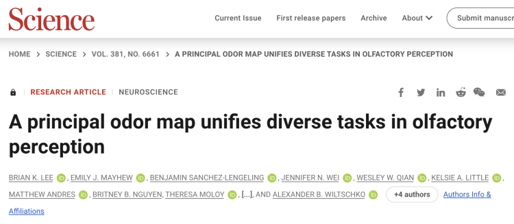 今年 9 月初的《科学》杂志刊登了一篇由初创公司 Osmo(从谷歌分拆)和莫奈尔化学感官中心(Monell Chemical Senses Center)等多个研究团队共同发布的论文,其中称,AI 模型可以让机器拥有比人类更好的“嗅觉”。