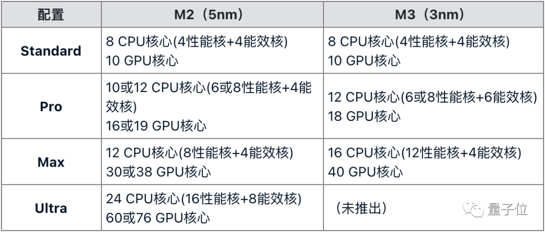 简单和 M2 系列芯片的配置对比一下,除了 Max 以外,芯片配置没有太大变化: