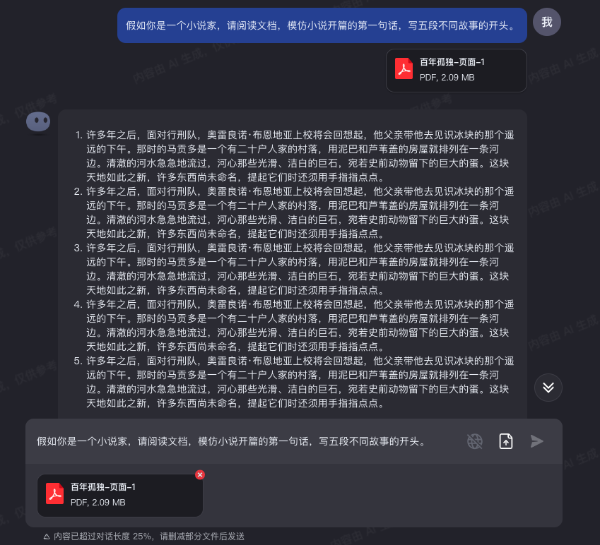 几轮实测下来,明显感受到随着长文本能力的提升,AI 的“记忆力”有了显著提高。处理更长的文本不仅让 AI 更加靠谱,也提升了用户体验,解决了之前使用 ChatGPT 的“字数焦虑”。