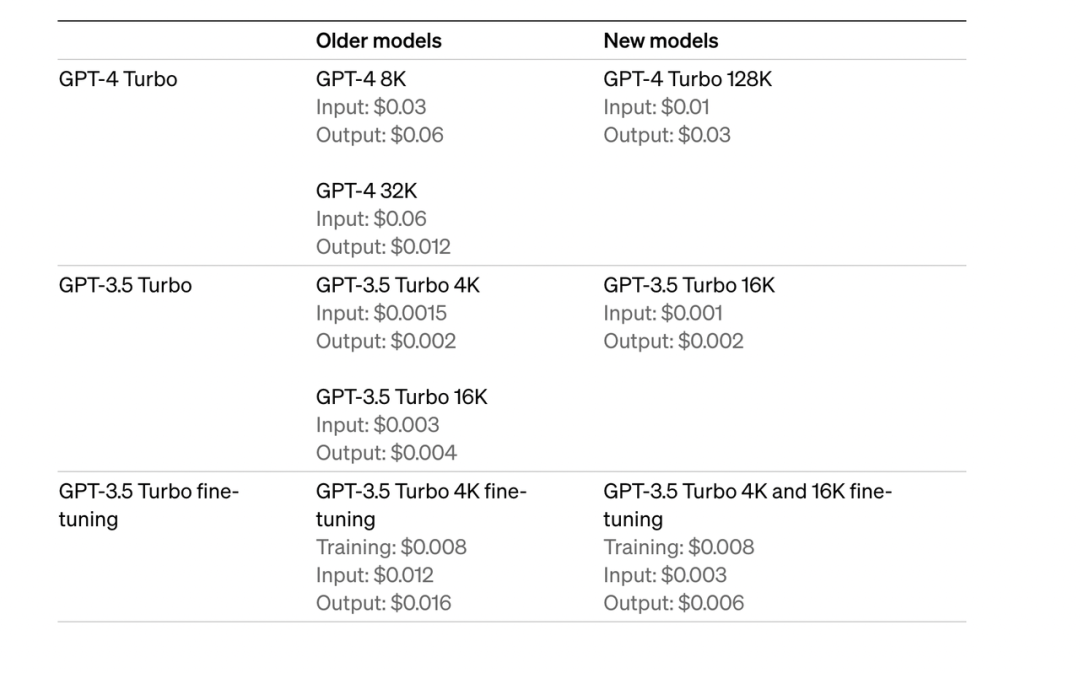 更重要的是,从 ChatGPT 到 GPT-4,OpenAI 一直掌握着“卖方优势”,只因价格太贵,导致无法大规模普及。套用马斯克用在特斯拉身上的一句话“没有人不想拥有 GPT-4,只要他足够便宜。”Altman 也体察到了民意,升级后的 GPT-4 Turbo,不仅将性能提升了一大截,还把价格“打了下来。