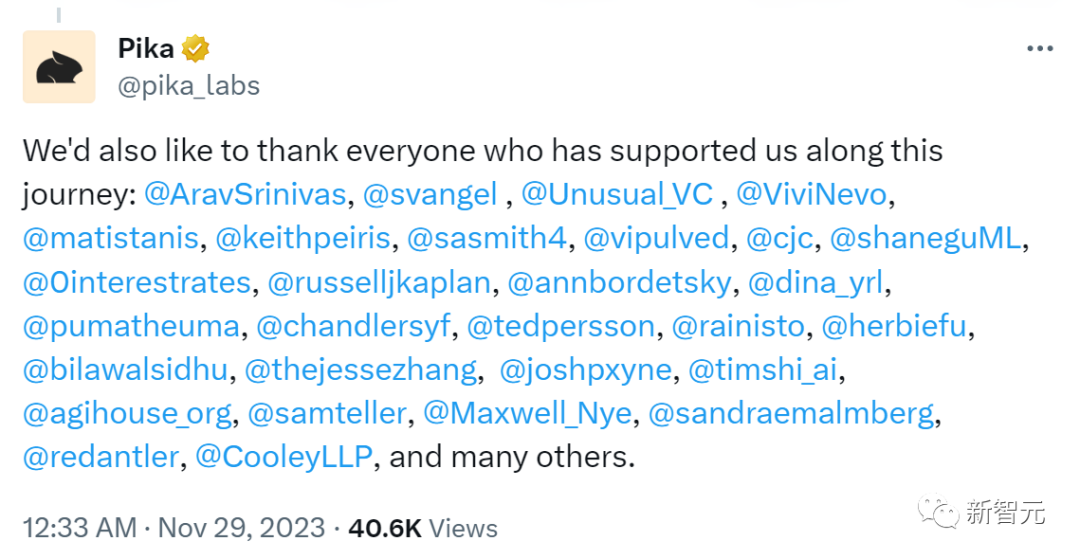 这种爆炸式增长,引起了硅谷投资人的兴趣,让 Pika 在三轮融资中筹集到了 5500 万美元。
