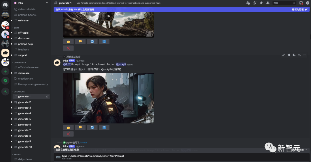 在获取 Pika 1.0 试用资格之前,和 Midjourney 一样,用户现在通过 Discord 获取 Pika Labs 的视频生成服务。