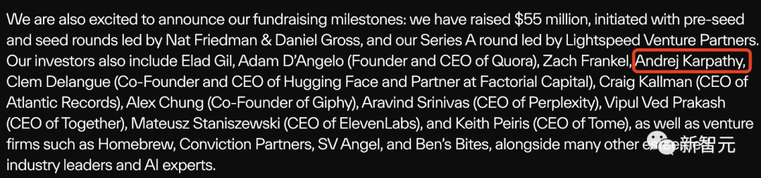前 Github CEO Nat Friedman、Quora 创始人 Adam D'Angelo、OpenAI 创始成员 Karpathy、Perplexity CEO 等等,堪称是集齐了硅谷的半壁江山。
