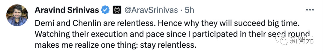 Perplexity AI 的首席执行官表示,Demi 和 Chenlin 充满干劲。这就是为什么她们会大获成功的原因。从我参与他们的种子轮融资开始观察他们的执行力和进度,让我意识到一件事:保持不懈的干劲。