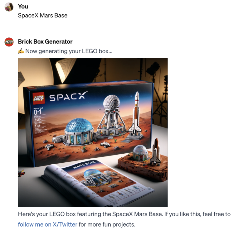 这个乐高 GPT 能将你能想到的任何东西生成乐高盒子,比如 SpaceX 的火星基地。
