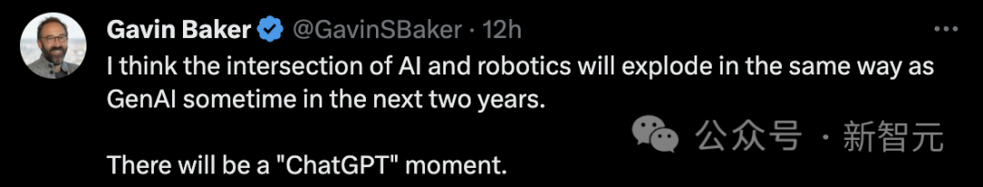 我认为,在未来 2 年的某个时候,人工智能和机器人技术的交叉,将同生成式 AI 一样爆炸。