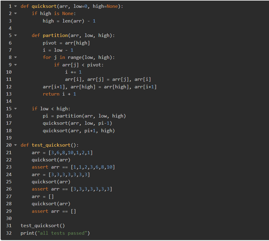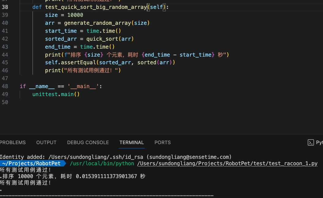 可以看出来这个功能还是很方便的,因为小浣熊的测试代码写得很快,同时正确性也是满足了满足了我的两个要求,即要求加入随机的数组生成,以及衡量排序时间。