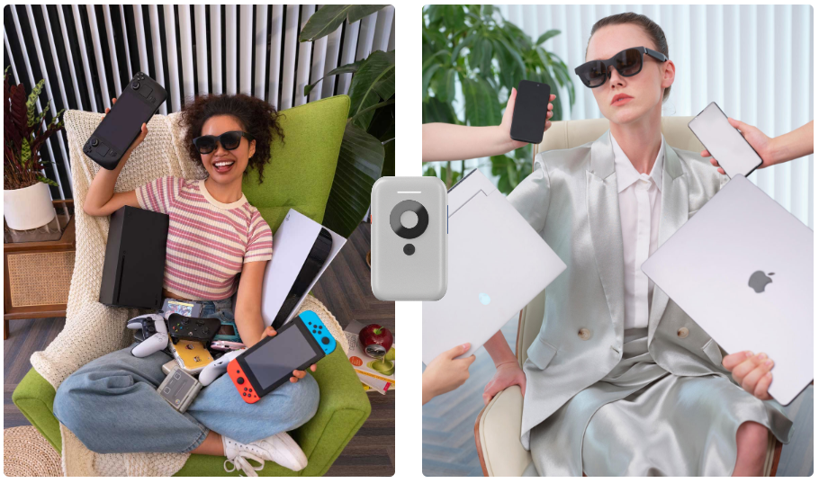 在产品上,我们的策略就是,让产品可以连一切。例如,XREAL Air 系列眼镜就可以兼容众多主流游戏和流媒体娱乐设备,包括微软 Xbox、索尼 PlayStation、任天堂 Switch、Steam Deck、华硕 ROG Ally、iOS 和 Android 设备、Windows PC 和 Mac。
