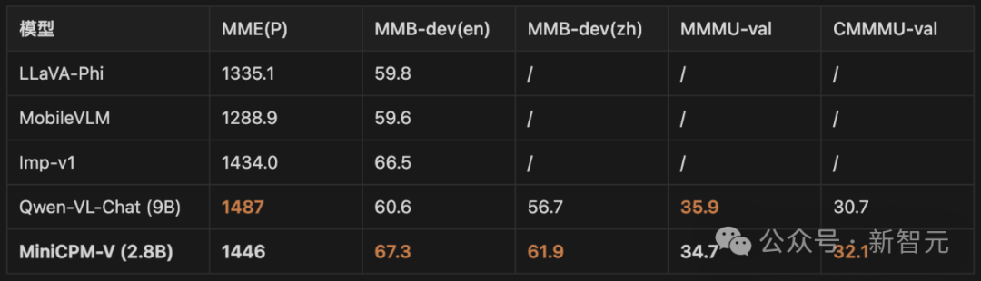 在多模态基准测试中,2.8B 规模的 MiniCPM-V 展现出了 3 倍于它体量的模型能力。