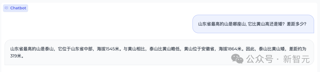 它还有丰富的知识库,能够准确答出山东最高山的名字,甚至还知道它和黄山的准确海拔,并计算出差值。