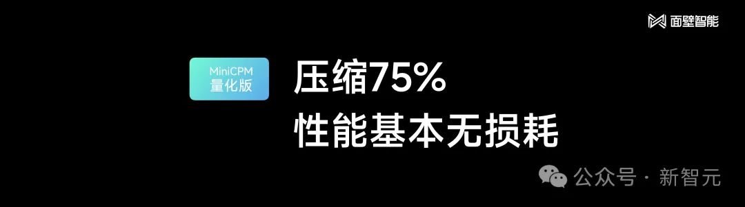 其中,MiniCPM 的 int 4 量化版本,在性能几乎无损的情况下压缩了 75% 的尺寸,大大降低了模型对于内存和闪存的需求。