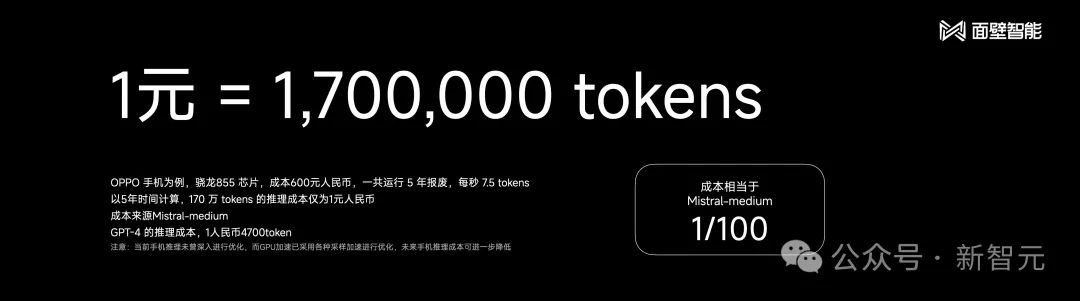 以搭载骁龙 855 芯片的手机为例,处理 170 万 tokens 的成本仅为 1 块钱,几乎只有在云端运行的 Mistral-Medium 的 1%。