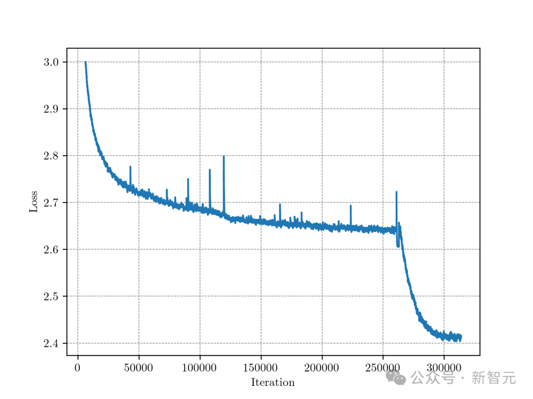 研究团队使用了模型沙盒实验中探索出的最优配置,WSD LRS,batchsize 为 3.93M,Max Learning Rate 为 0.01。