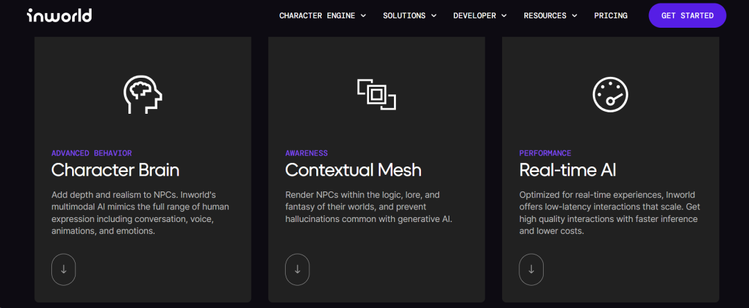 角色引擎由角色大脑(Character Brain)、情境网格(Contextual Mesh)和实时 AI(Real-Time AI)组成,图片来源:Inworld AI