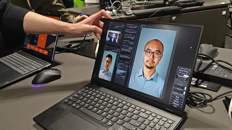 在 RTX AI 品鉴会现场,对于 NVIDIA 这样的头部芯片厂商来说,其代表性技术几乎都需要通过合作伙伴的产品搭载来实现,所以本文介绍的这些活动现场的技术 Demo 演示都是通过 AIC 与 OEM 的产品来展示,其中现场用来展示部分 AI Demo 的几台搭载 RTX 40 系笔记本电脑 GPU 的联想拯救者吸引了我们的注意。