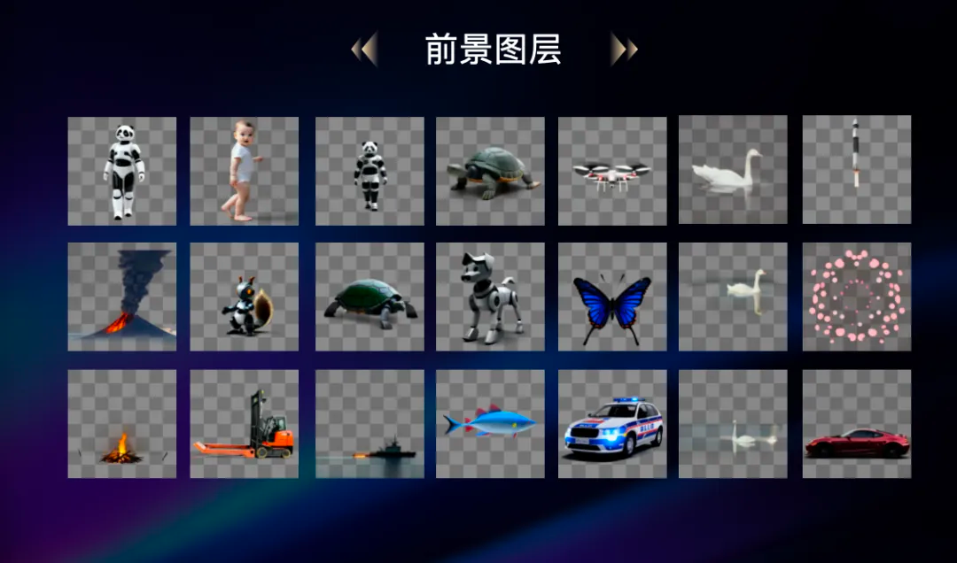 比如,寻光平台上有个前景图层功能,用户可以通过输入文本生成符合文本描述的、并且具有透明背景的视频图层。