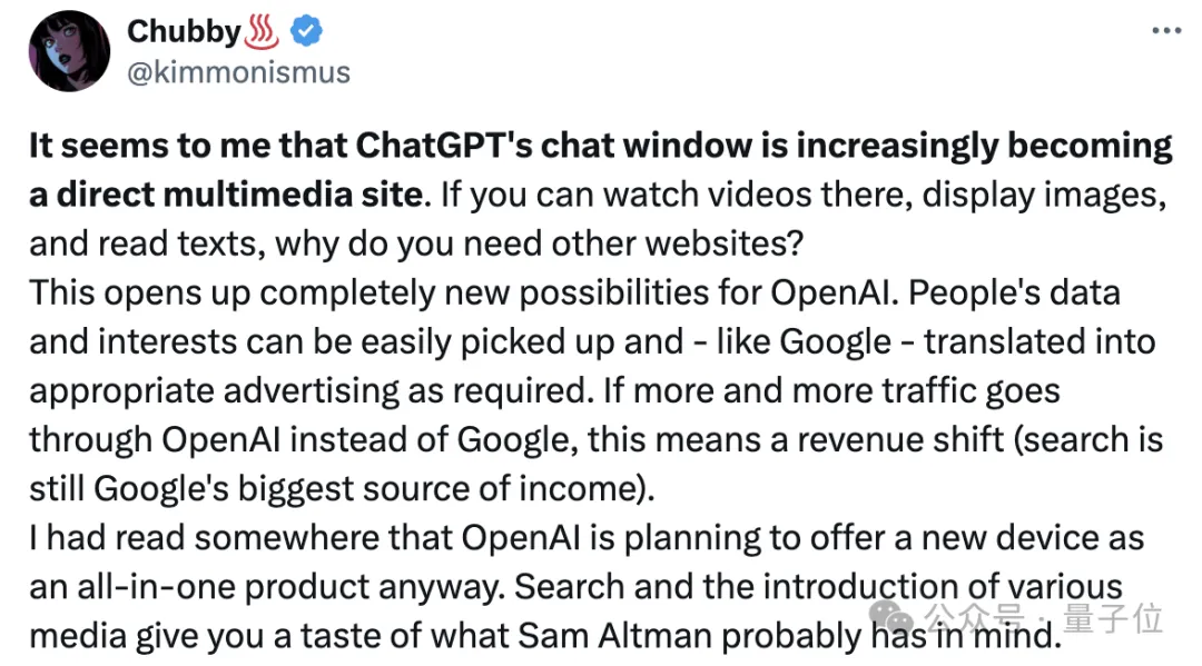 有网友看了后说,ChatGPT(应该是指 SearchGPT)正在成为一个直接的多媒体站点。
