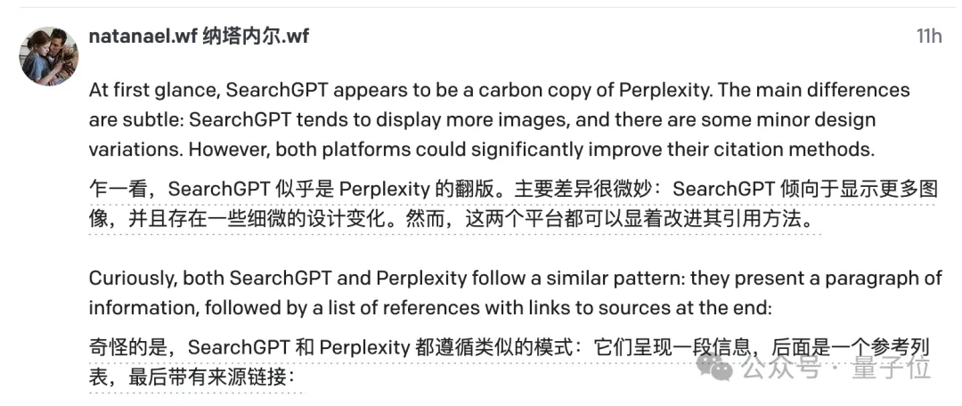对此,博主分别用 SearchGPT 和 perplexity 搜索了自己的昵称。