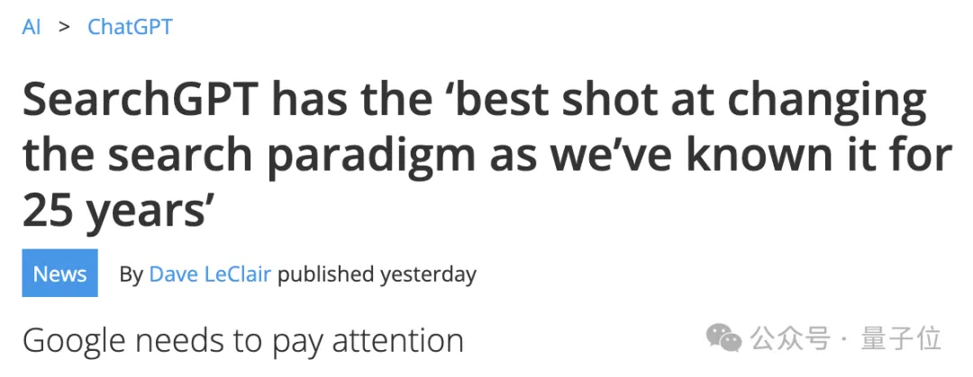 甚至 Tom’s Guide 的一篇文章说 SearchGPT 是“改变我们 25 年来所熟知的搜索范式的最佳机会”,直言谷歌要多留心了。