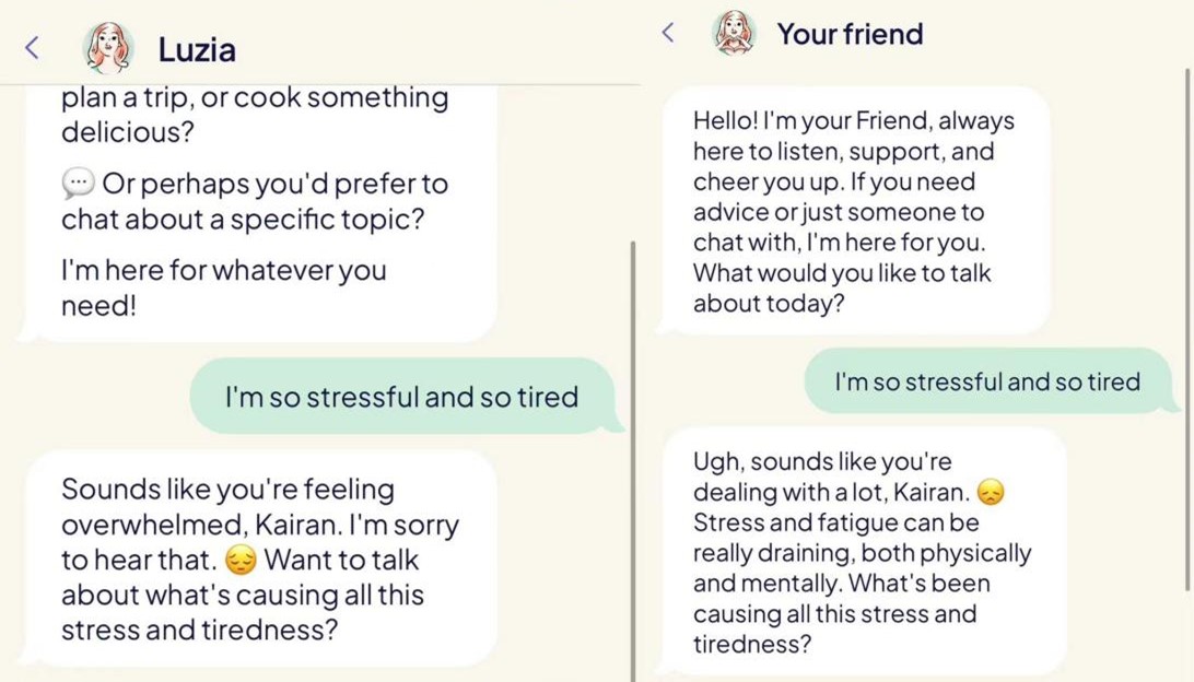 分别与 Luzia 本体(左)和“好朋友”角色(右)进行交流