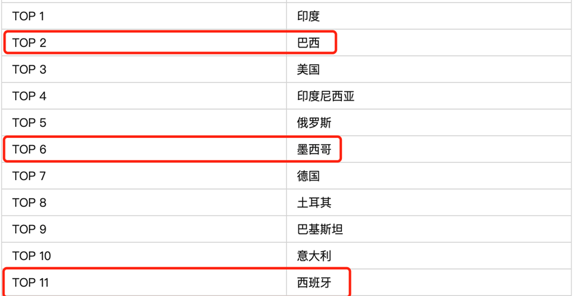 2022 年 WhatsApp 前 11 大市场排名,注:根据其他资料显示目前的情况基本相同
