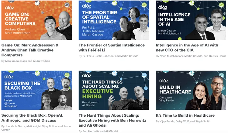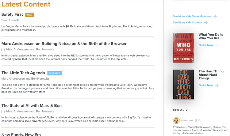 除了举办 Tech Week 这样的线下活动,A16z 的合伙人团队及其持续发布的内容也展现出极强的存在感。