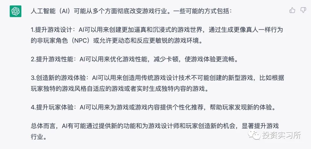 AI 能给游戏行业带来什么变革这个问题,ChatGPT