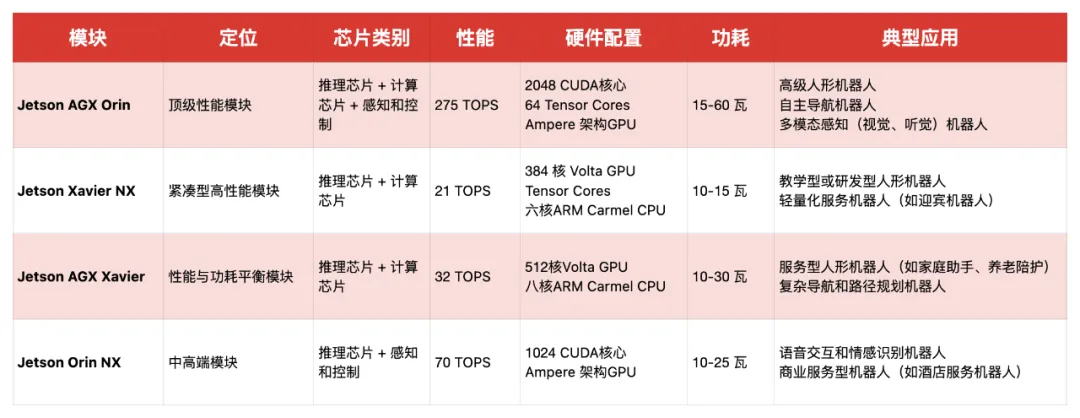 虽然 Jetson AGX Xavier 和 Jetson Orin 系列适用于机器人领域,但并非专门为人形机器人而设计,它们同样适用于无人机、自动驾驶等产品。