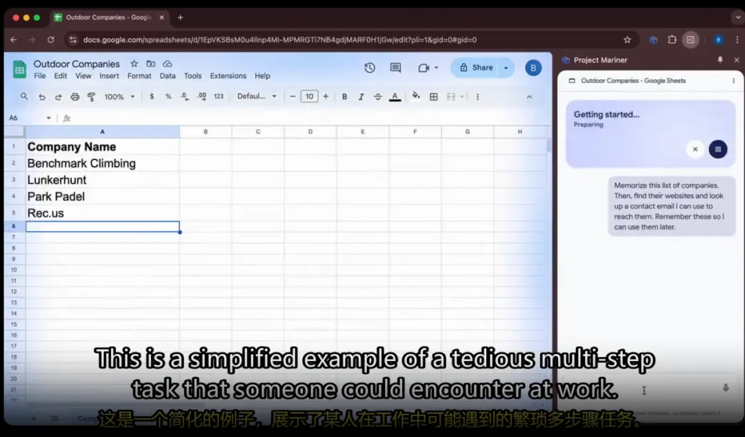 以谷歌的 Project Mariner 为例,这款浏览器 Agent 可以理解和操作网页上的所有元素,包括文本、代码、图片和表单。它不只是单纯浏览,而是能够完成从信息搜索到购买、表单填写等一系列操作。