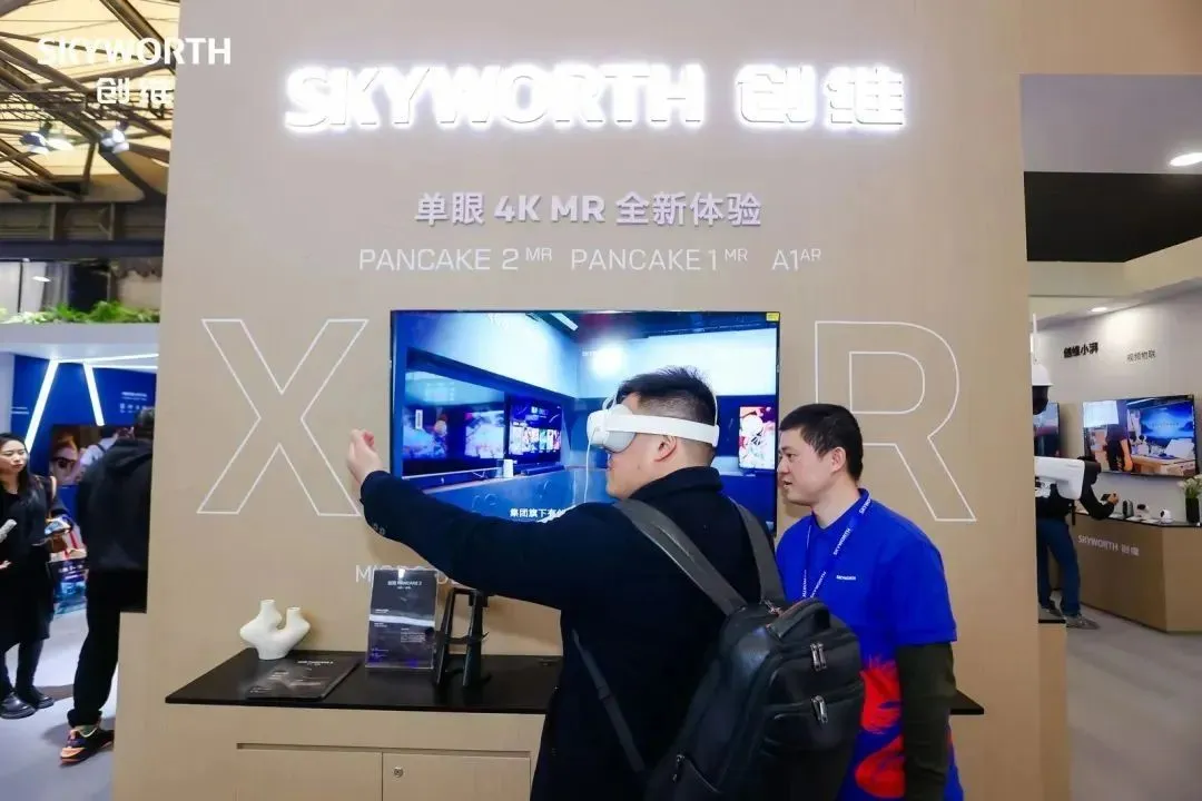 一些看起来背景更传统的厂商也在发力,专攻数智化智能终端的创维数字也是“正宗”的 AI 眼镜制造商。旗下子公司创维新世界已于国内外市场已上市销售 pancake 系列 VR 一体机、VR 分体机、短焦 VR 眼镜、MR 一体机、搭载 AI 功能的轻交互 AR 眼镜等产品。