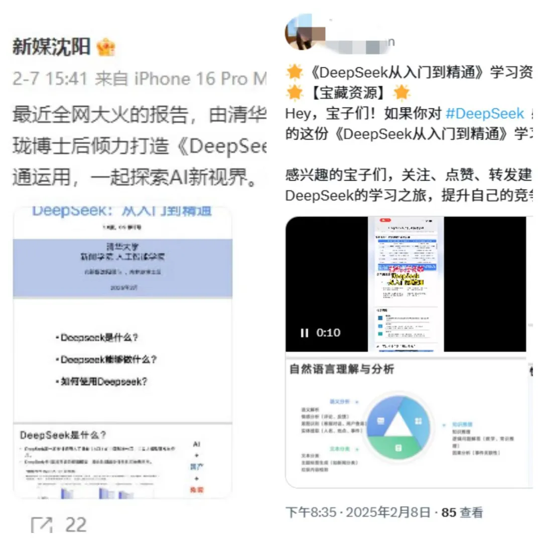 清华大学做的那份爆款《DeepSeek:从入门到精通》报告,是一份相当详细的高质量教学。但不少博主当成自己的宣传,付费在个人账号上售卖。引得这份报告的出品团队、清华教授在线辟谣:这份报告短时间阅读破千万,没有授权第三方售卖,这份报告是免费的。