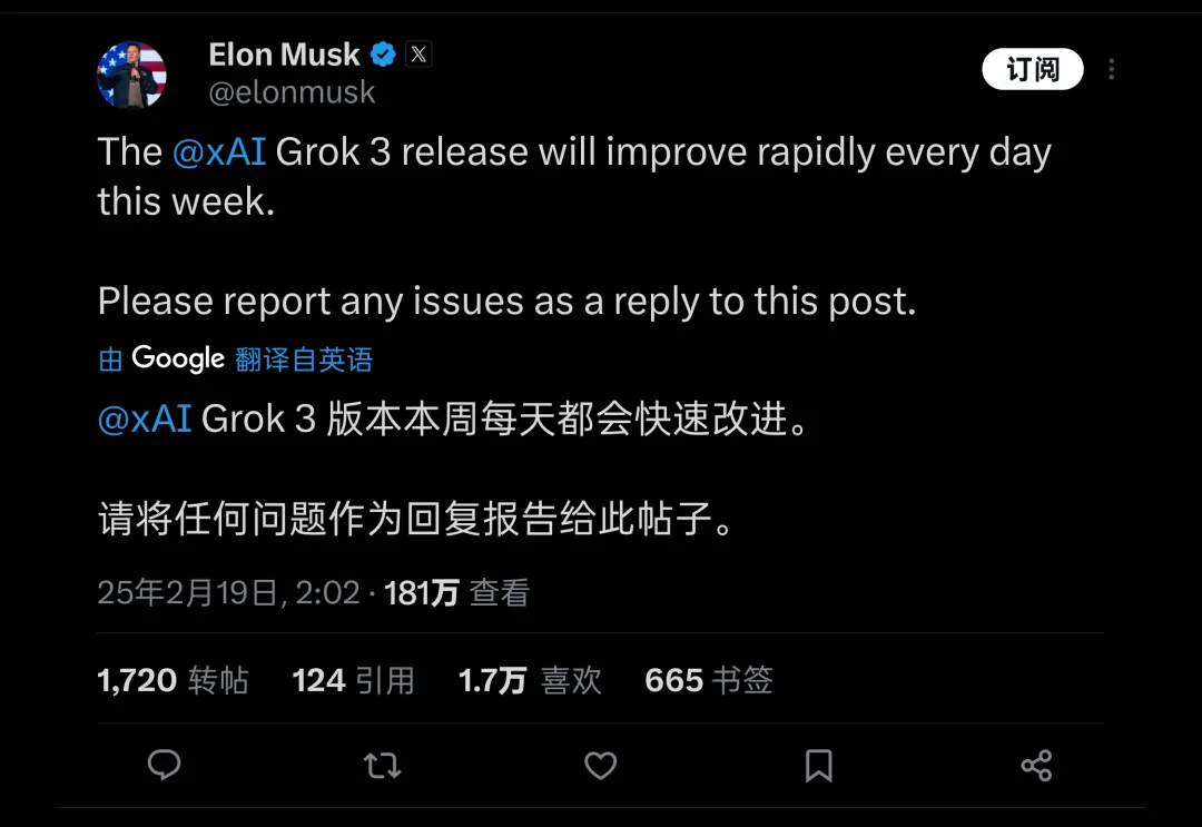 对于这些事实,最早意识到并且也是最深刻理解的人,肯定是 Grok3 的开发团队与马斯克,因此马斯克也在社交媒体上不断表示当前用户体验到的版本「还仅仅只是测试版」「完整版将在未来几个月推出」。马斯克本人更是化身 Grok3 产品经理,建议用户直接在评论区反馈使用时所遇到的各种问题。