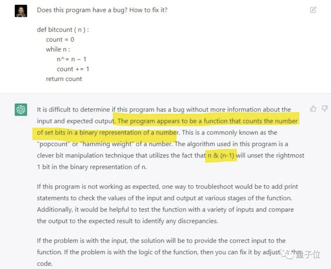 ChatGPT 找 Bug 可以说是相当贴心了,举个栗子,repit 的 CEO 给 ChatGPT 甩了一段有错误的代码,让它找出其中的 Bug。