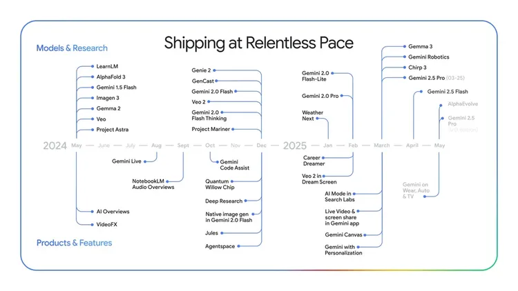 “通常,在 I/O 大会召开前的几周,我们不会透露太多信息,因为总会把最重磅的模型留到大会上发布。”Pichai 说。“然而在 Gemini 时代不同了 。现在,我们很可能在 IO 前就发布了最智能的模型,或者提前一周公布像 AlphaEvolve 这样的突破 。我们的目标是尽快将最出色的模型和产品交付到大家手中 。我们速度前所未有的快 。”