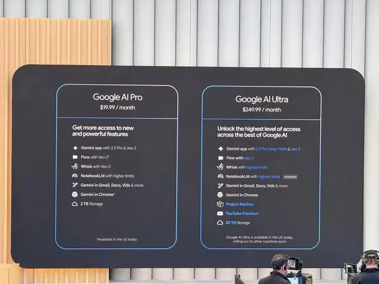 它将原本的 AI Premium 订阅正式更名为 “谷歌 AI Pro”,并推出了全新的高端版 “谷歌 AI Ultra”,月费高达 249.99 美元。Pro 版月费仍为 19.99 美元。