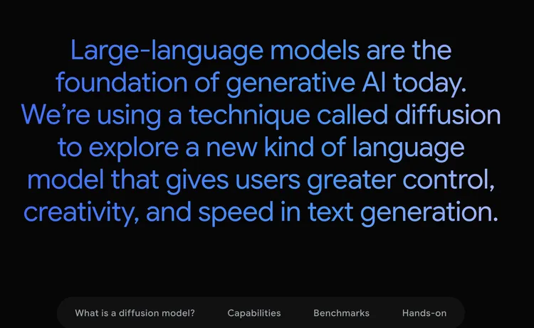 一个有意思的一带而过的彩蛋,是 Gemini 的 Diffusion 模型,它不是用在图片上,而是用在文本生成上。这让它的生成速度快的惊人。在现场的展示上,输入完成后,它几乎是瞬间完成了输出。
