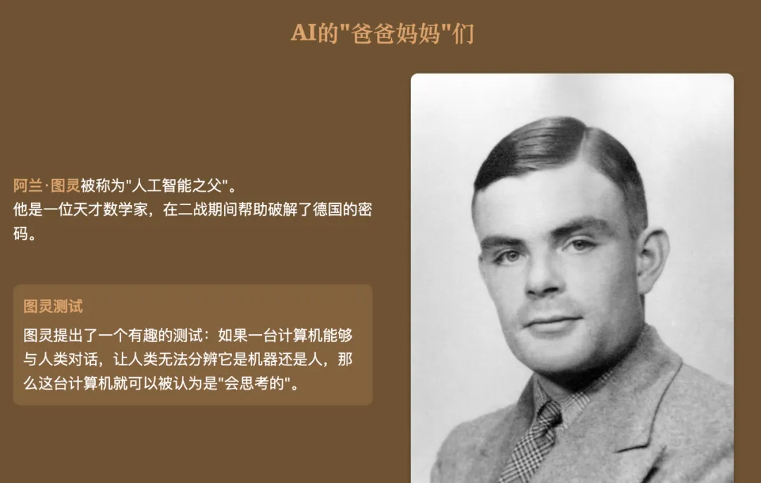 类似的“模板化”思路也体现在 PPT 生成上。我们尝试让它“做一个关于人工智能简史的 PPT,面向小学生群体”。