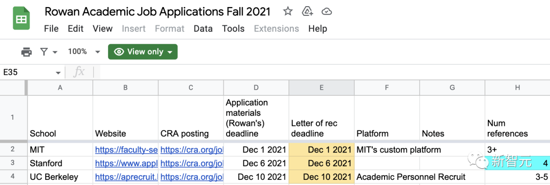 在制作学校名单时,Zellers 参考的是 CRA 工作板块(https://cra.org/),上面有很多学校的招聘广告。下面这个是他最终采用的名单,仅供参考: