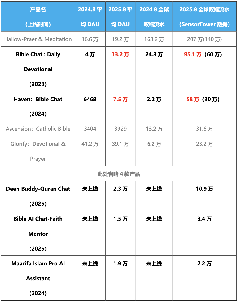 而半年多过去,Bible Chat 的数据变化给出了答案。