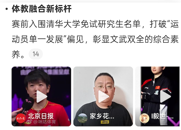 天眼查媒体综合信息显示,在 2025 年 WTT 澳门冠军赛女单决赛中,中国选手孙颖莎战胜队友王曼昱,卫冕冠军。而对于体育门外汉而言,必然搞不懂 WTT 澳门冠军赛女单决赛的具体战况,以及孙颖莎卫冕冠军的意义,把问题抛给微博智搜和 DeepSeek。