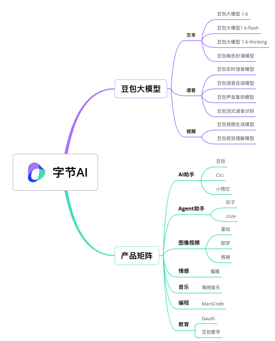 上面 MiniMax 的这张图让人似曾相识,当模型和产品层扩大后,就能得到一张字节 AI 的版图。