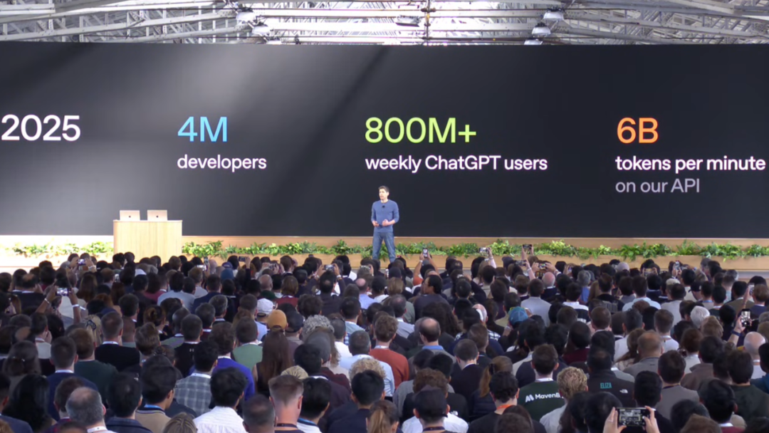 这份战略的底气,源于一组惊人的数据。奥尔特曼宣布,ChatGPT 的周活跃用户已从 2023 年的 1 亿飙升至超过 8 亿。与此同时,构建于其上的开发者社区规模翻倍达到 400 万,而 API 的调用量更是从每分钟 3 亿个 token 暴增至 60 亿个。