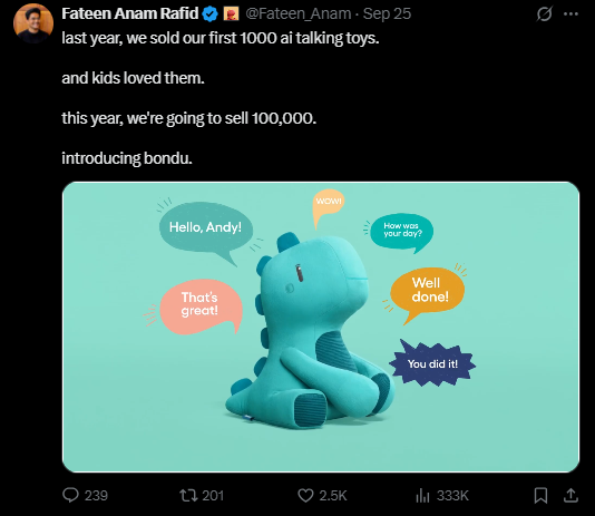 1. AI toy startup raises $5.3 million to launch emotionally intelligent companion for kids named Bondu - GamesBeat