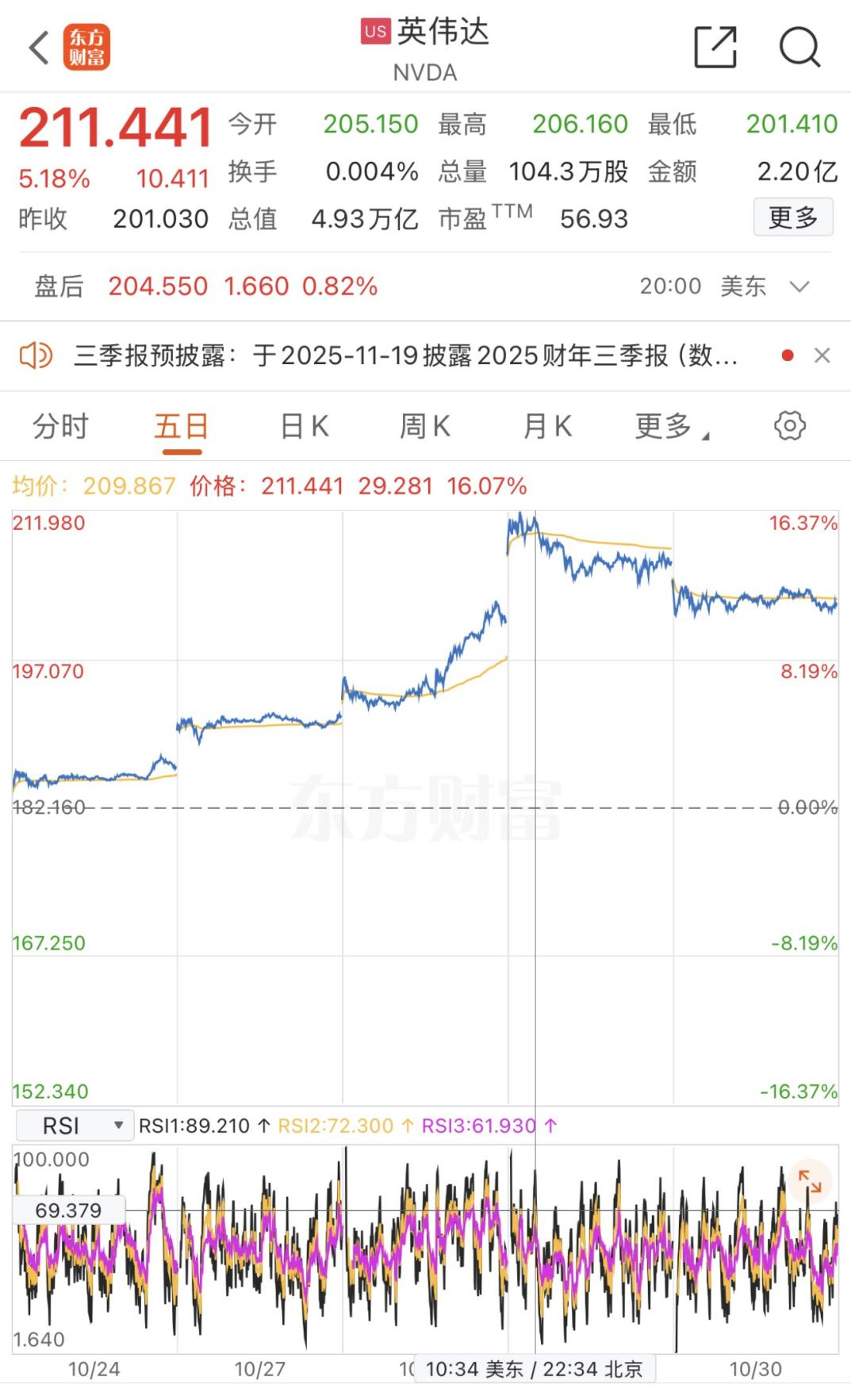 眼下正值美股财报季,当地时间 10 月 29 日,英伟达市值突破 5 万亿美元,远超微软和苹果(市值约 4 万亿美元),成为全球首家跨入“5 万亿美元俱乐部”的上市公司。当天,英伟达股价上涨超 5.6%,最高达 212.19 美元。
