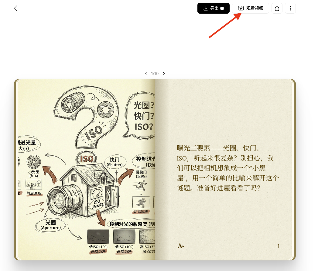 点击创作、经过几分钟的等待后,用户就能获得一个“图片、文字、语音相互对照”的预览版,用户可以通过翻页的方式核对图文内容。