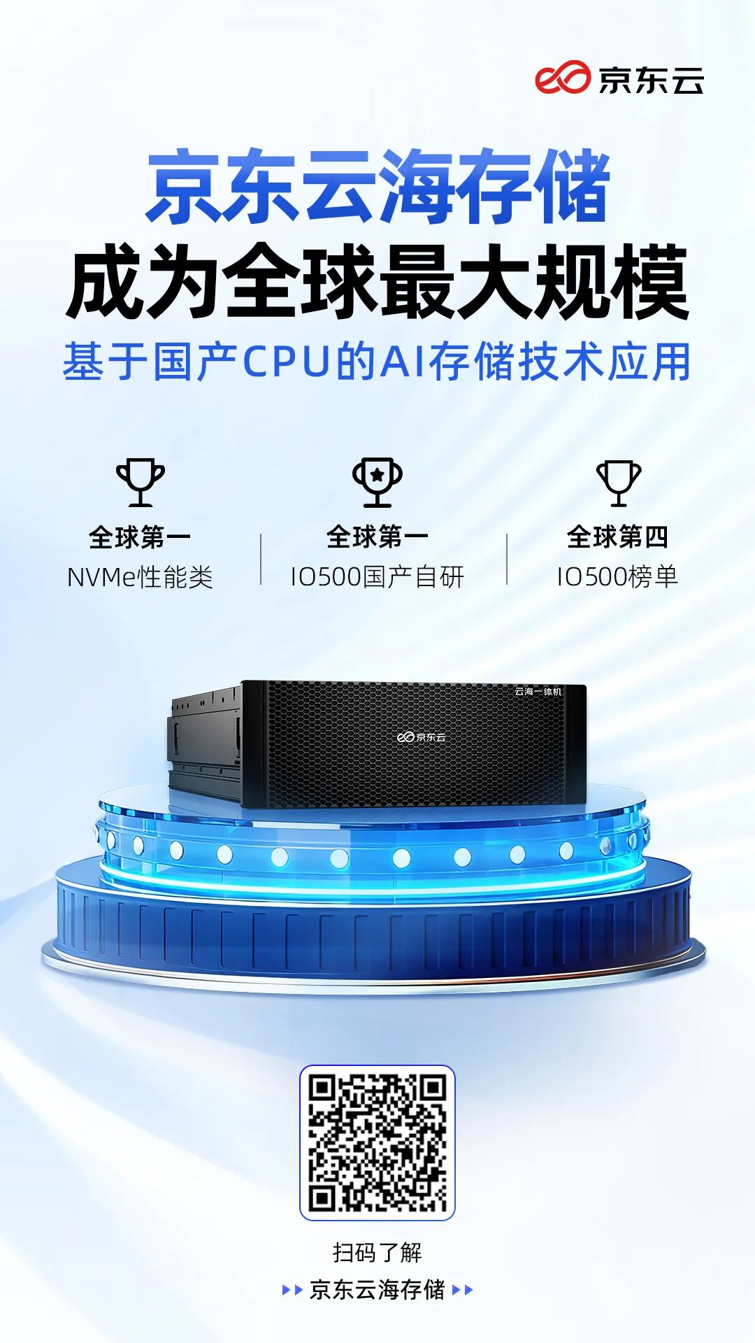 因此,存储能力会是 AI 竞争的一个赛点,京东云海的 IO500 榜单成绩亦是一个信号。其自研存储系统仍有非常大的上限拓展空间,还将推动高性能存储在模型训练、科学计算、大规模数据分析等垂直场景中广泛应用,助力更多企业重塑 AI 生产力。