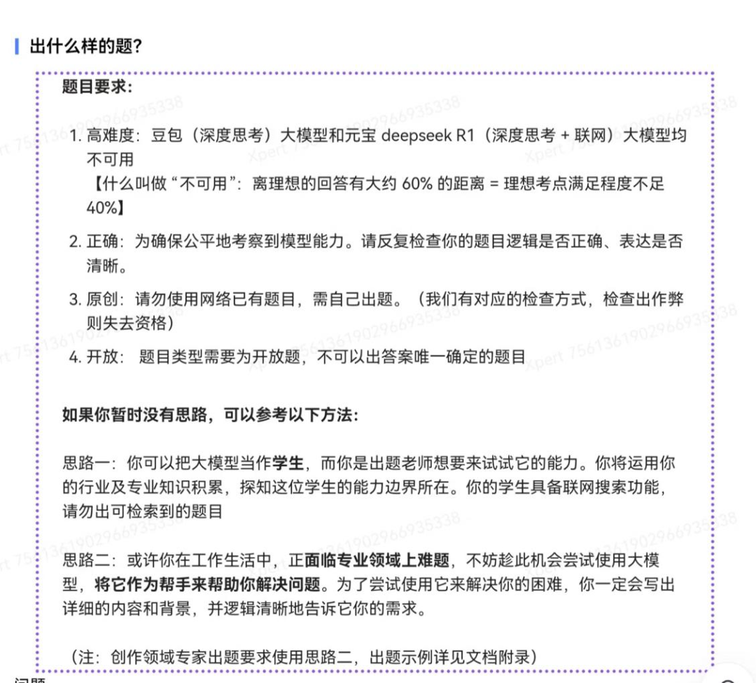● 兼职的出题要求,希望题目难倒大模型。图源:受访者